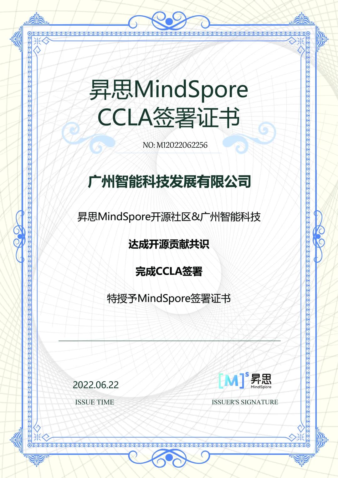 近日,广州智能科技发展有限公司签署CCLA(Corporate Contributor License Agreement,企业贡献者许可协议书),正式加入昇思MindSpore开源社区。