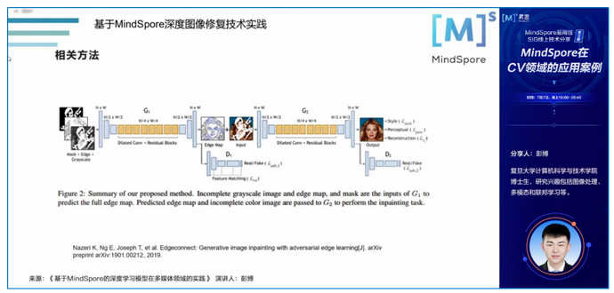 复旦大学计算机科学与技术学院博士生彭博,围绕自己近期的工作,详细介绍了基于MindSpore深度图像修复技术实践和基于MindSpore的多模态技术在纺织工业的应用,同时,为大家分享了自己的建模思路。