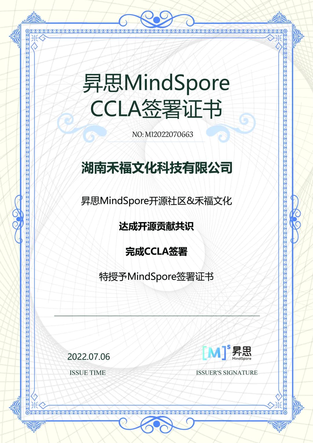 近日,湖南禾福文化科技有限公司签署CCLA(Corporate Contributor License Agreement,企业贡献者许可协议书),正式加入昇思MindSpore开源社区。