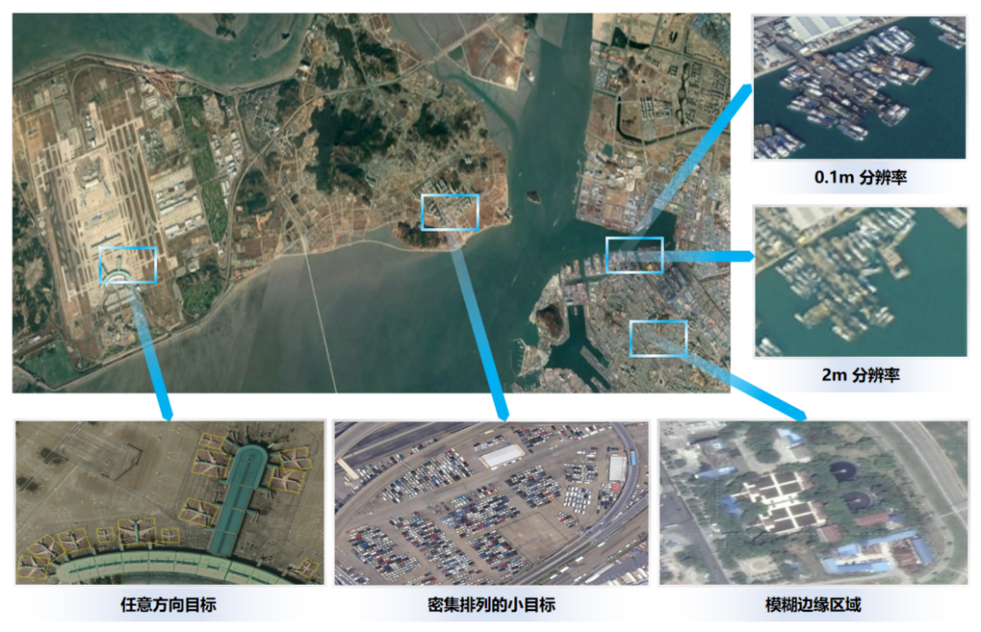 同时,在数据集中包含了1亿多具有任意角度分布的目标实例,覆盖全球150多个典型城市、乡镇以及常用机场、港口等场景。所用样本数据具备遥感专业特色,且整个样本集都无需标注,能大幅节省训练数据标注成本。