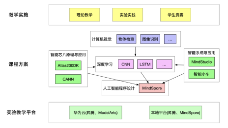 1、开展“AI课程教学”,与昇思全面融合,培养产业链创新人才