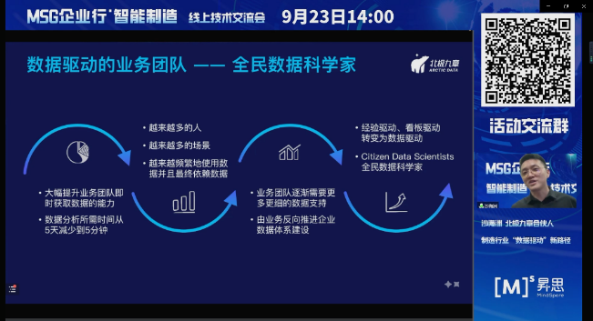 北极九章合伙人沙海洲:分享了制造行业“数据驱动”新路径,通过人人可用的数据增强型分析引擎,降低数据分析工具的学习成本,帮助企业打通数据应用的最后一公里,实现数据驱动