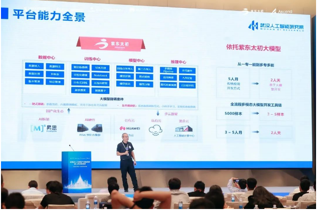 华为高级副总裁、计算产品线总裁邓泰华在致辞时表示,武汉通过人工智能计算中心的建设,为以“紫东太初”大模型为代表的前沿技术孵化提供公共算力基础,更为多模态人工智能产业联合体的成立创造了条件,实现政产学研用有效协同,打通科研创新到产业落地关键路径。华为在与中科院自动化所以及武汉东湖高新区管委会的协作中,根据“紫东太初”的成功经验总结出了使大模型从创新到落地的全流程体系,并将推广到各个大模型领域,助力人工智能产业高质量发展。