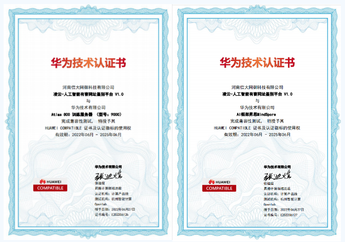 **近日,河南信大网御科技有限公司的中原人工智能反诈骗创新解决方案与华为Atlas 800训练服务器和全场景AI框架昇思MindSpore完成兼容性测试。**该方案基于昇腾AI基础软硬件平台,能够在短时间内对涉诈网址/APP进行识别,识别准确率高达99%。