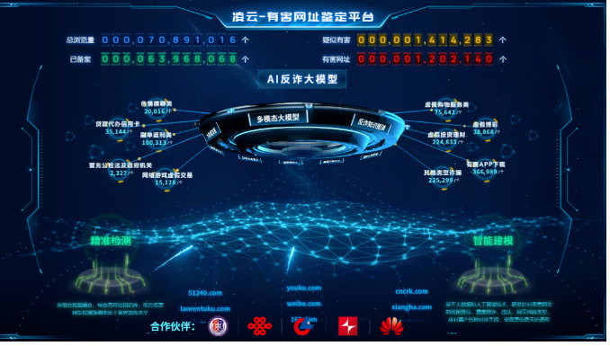 该模型通过对网站里面的文本、音频、视频、图片等进行识别,可以分门别类地筛选出诈骗网址,并确定诈骗类型。目前,该模型已覆盖贷款诈骗、杀猪盘诈骗、退款诈骗及裸聊诈骗等20余种主流诈骗类型, 识别准确率达99%以上。