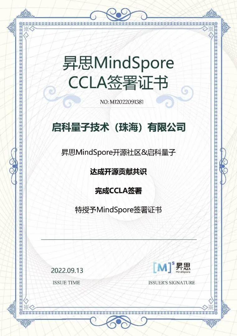 近日,启科量子技术(珠海)有限公司签署CCLA(Corporate Contributor License Agreement,企业贡献者许可协议书),正式加入昇思MindSpore开源社区。
