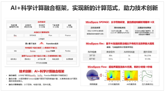 这种情况下,框架一方面要考虑的是更好的支持AI,方便大家写模型、训练模型,另一方面是把科学计算更好的支撑起来,让科学计算可以直接拿神经网络建模,然后融入到本身问题的解决方案当中,或者直接利用当前的NPU、GPU算力去做本身应用场景的加速。比如,给航空航天的一些数据计算的加速,可能达到百倍以上的加速比。