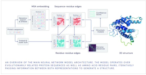 另外一方面,AI+科学计算,是最近特别火热,也是一个未来的趋势方向,这是Alpha Fold做蛋白质结构预测的示例图,像传统的一些科学计算的领域也逐渐地引入当前AI领域的SOTA模型。比如Transformer结构强大的特征抽取以及拟合的能力,能够经过一些模型上的改造,将大量的传统科学计算领域数据进行利用,获得比传统方法更好的效果。