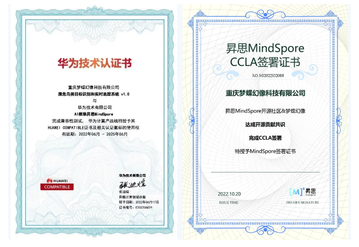 2022年6月,重庆梦蝶幻像科技有限公司(以下简称“梦蝶幻像”)的濒危鸟类目标识别和实时追踪系统完成了与全场景AI框架昇思MindSpore的兼容性测试。