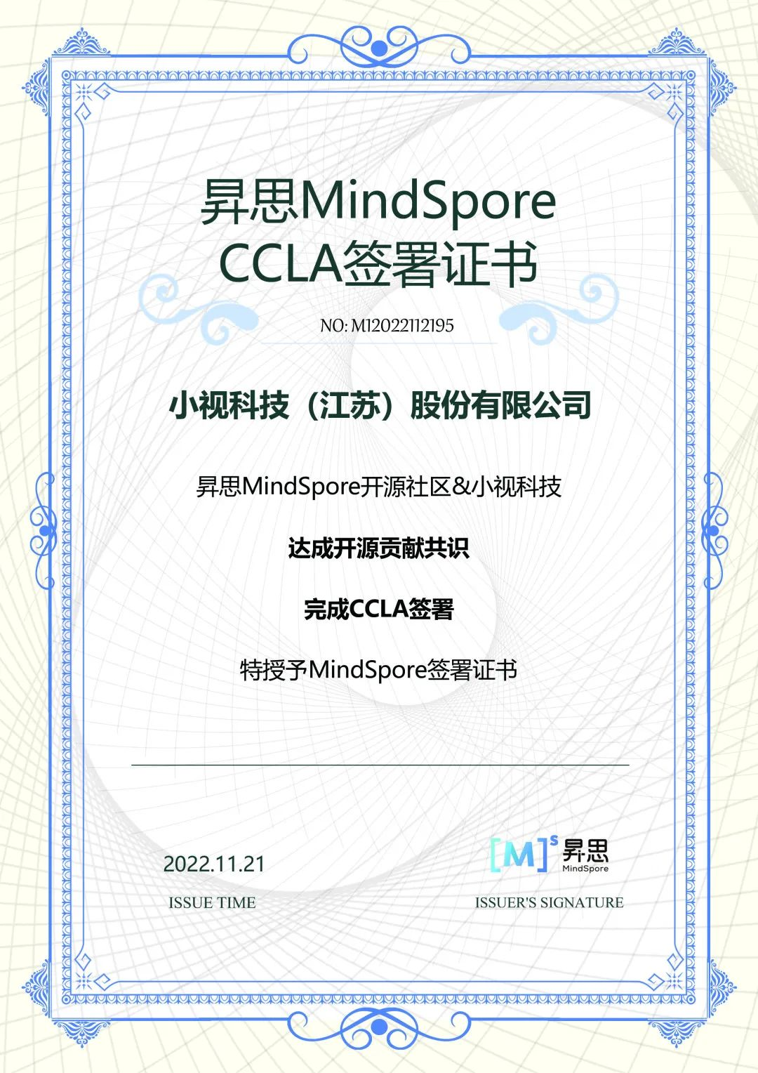 近日,小视科技(江苏)股份有限公司签署CCLA(Corporate Contributor License Agreement,企业贡献者许可协议书),正式加入昇思MindSpore开源社区。