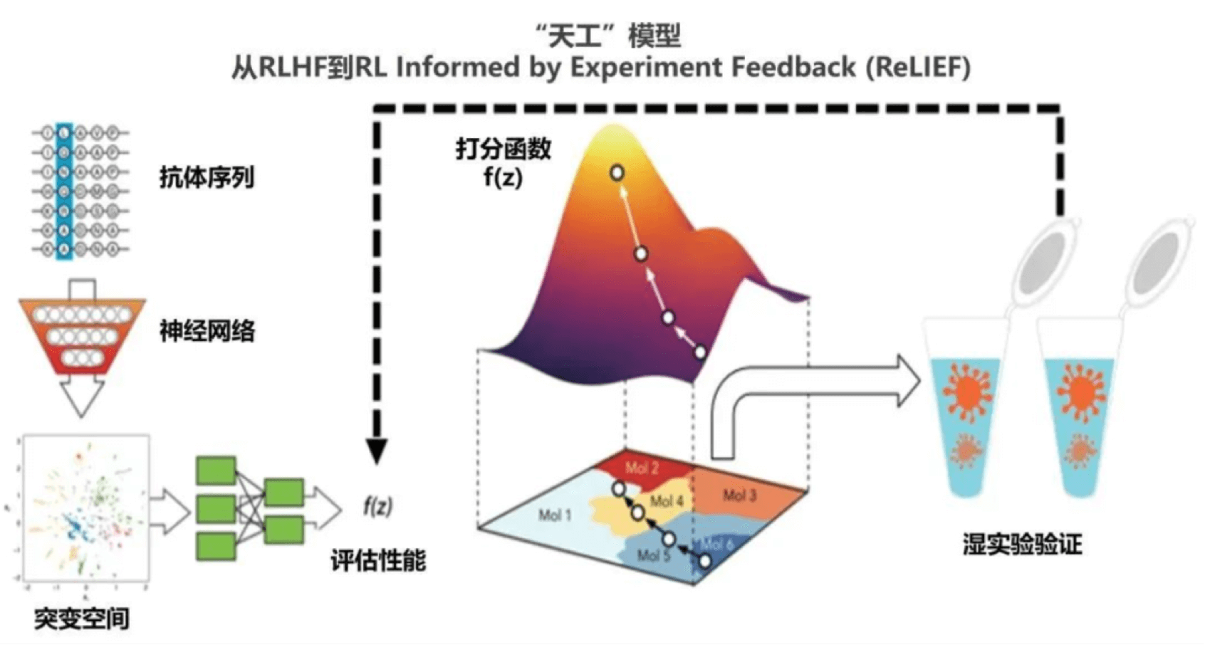 “天工”抗体设计模型是业界多领域交叉融合的杰出成果。依托昇腾硬件与昇思 MindSpore AI 框架的基础软硬件能力, “天工”模型实现高效训练和推理。昌平实验室则为该模型注入了抗体设计领域的生物先验知识,使其能够同时支持高精度的功能设计和嫁接设计。协和医学院以其丰富的临床经验,迅速对新设计的抗体进行实验验证,并将湿实验结果反馈至模型,形成了干湿实验的闭环,为“天工”模型的完善和应用提供了强有力的支持。