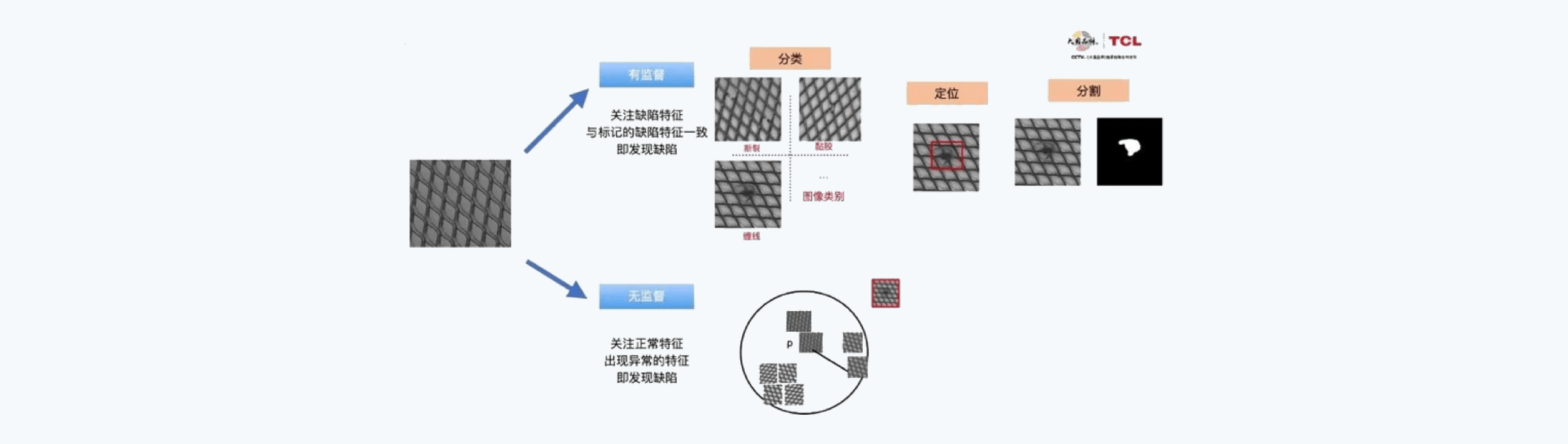 工业AI是智能制造的一个重要发展方向,有望能有效地推动生产力的发展,也是未来国家间竞争的关键。工业质检是工业生产中最重要的环节之一,也是工业转型升级的重要突破口。传统工业质检依靠人力,不仅效率低、出错率高,而且人力成本高,人员易流失。基于AI的工业视觉检测是工业AI的一个重要的内容,主要针对工业生产中的各种产品的进行品质监控,筛选有缺陷的产品。在TCL自身的工业AI视觉实践中,我们发现由于工业生产场景自身的特点,缺陷检测任务经常缺乏足够的异常样本用作训练。因此,在工业质检领域,基于正常样本的弱监督/自监督/无监督算法有着相当重要的价值,甚至在一定程度上可以帮助AI算法在工业领域突破大规模应用的红线。