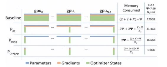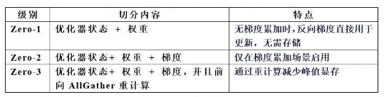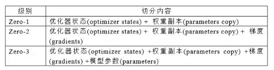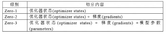 DeepSpeed提出Zero概念时,就对权重、梯度、优化器状态的分级切分给了严格的定义,如下表如下: