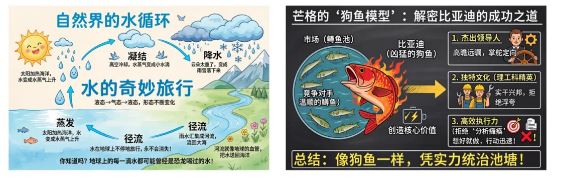 GLM-Image 更擅长绘制包含复杂逻辑流程与文字说明的科普插画及原理示意图。