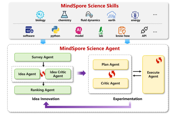 昇思构建 MindSpore Science 科研智能体系统,通过将科学全流程Agent化,减小科研环节之间的“人工衔接成本”,大幅压缩科研周期。