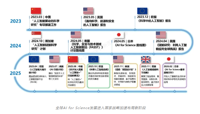 当前,人工智能前沿技术的快速突破,正推动 AI for Science 从“工具型赋能”向“驱动范式转型”深化拓展,全球创新活动呈现出全新的特征与趋势。