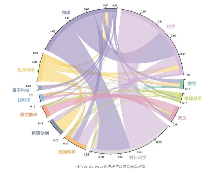 人工智能技术的深度应用也正在促进跨学科交叉融合,《报告》分析发现,化学、物理和材料科学等各学科领域交叉产生大量重要的科学新问题,AI for Science促进知识跨学科流动和融合迁移,激发科研创新动能,成为推动破解前沿科学问题的重要路径。