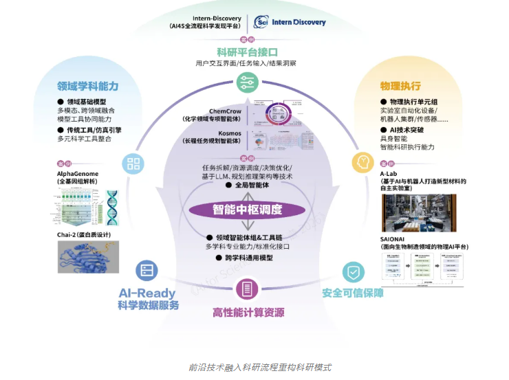 以智能体为调度中枢、嵌入学科知识的多模态领域模型为知识内核、具身智能驱动的自动化设备为物理执行载体,正在实现从“单点技术突破”到“体系化能力升级”,具备文献阅读、实验设计、实验操作、科学发现等科研全流程自主能力的新型科研体系形态初显。