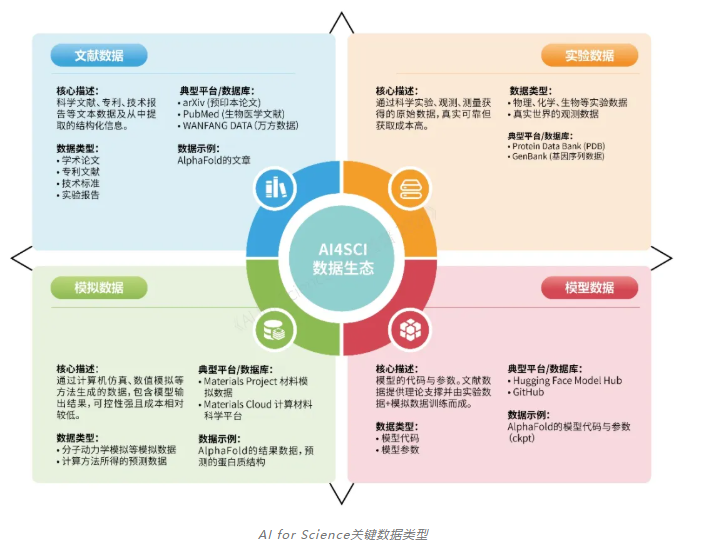 《报告》认为,由文献数据、实验数据、模拟数据与模型数据共同构成的“AI for Science”科学数据体系已初具形态。