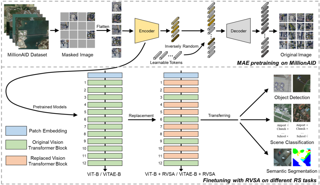基于视觉Transformer (Vision Transformer, ViT) 的大规模视觉模型具有良好的可扩展性和表征能力,在多种视觉感知任务中广泛应用。然而,在遥感图像感知领域,大规模视觉模型的潜力尚未得到充分探索。