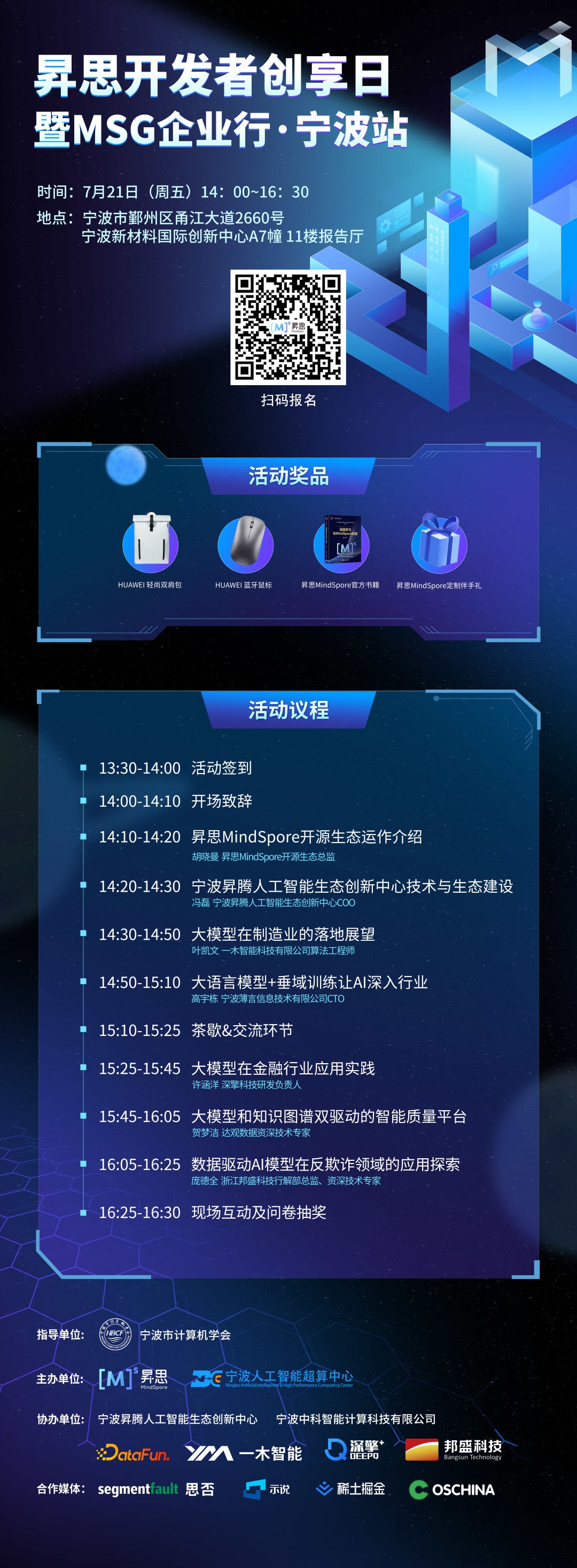 7月21日!昇思开发者创享日走进宁波,聚焦大模型,智创新未来!