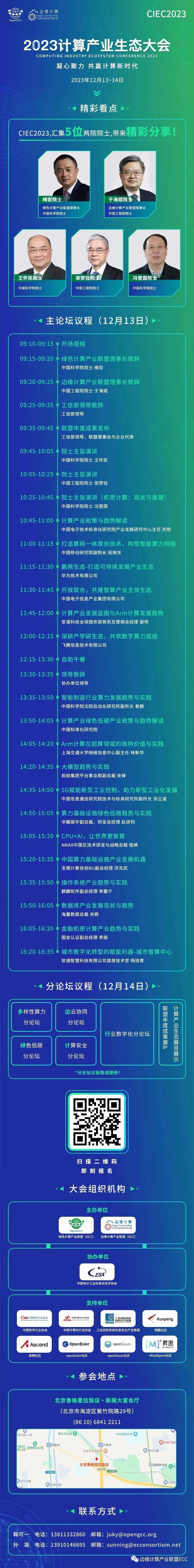为加快算力向生产力转化,助力计算产业生态繁荣,推动计算产业健康可持续发展,绿色计算产业联盟(GCC)、边缘计算产业联盟(ECC)定于2023年12月13-14日在北京联合举办2023计算产业生态大会(CIEC2023)。大会将围绕“凝心聚力,共赢计算新时代”主题,邀请院士、计算产业权威专家、两大联盟重点成员单位代表莅临,通过主旨演讲、专题论坛、趋势分享、展览展示、合作洽谈等多种形式呈现边云协同、多元泛在、智能敏捷、安全可靠、绿色低碳的计算产业全貌。