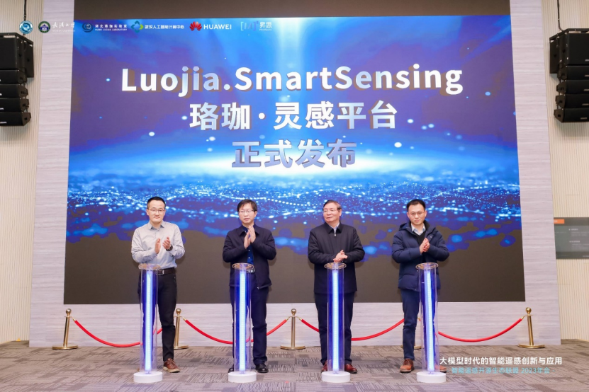 会上,龚健雅院士、卫征副理事长、华为IT基础设施集成业务部高级总监季英国、湖北珞珈实验室副主任金涛勇共同发布新一代遥感智能解译训推一体平台——珞珈.灵感(Luojia.SmartSensing)平台。该平台由武汉大学、湖北珞珈实验室及华为公司联合打造,为业界提供众多开源、开放的模型,有效支撑遥感领域科研与教学实践。