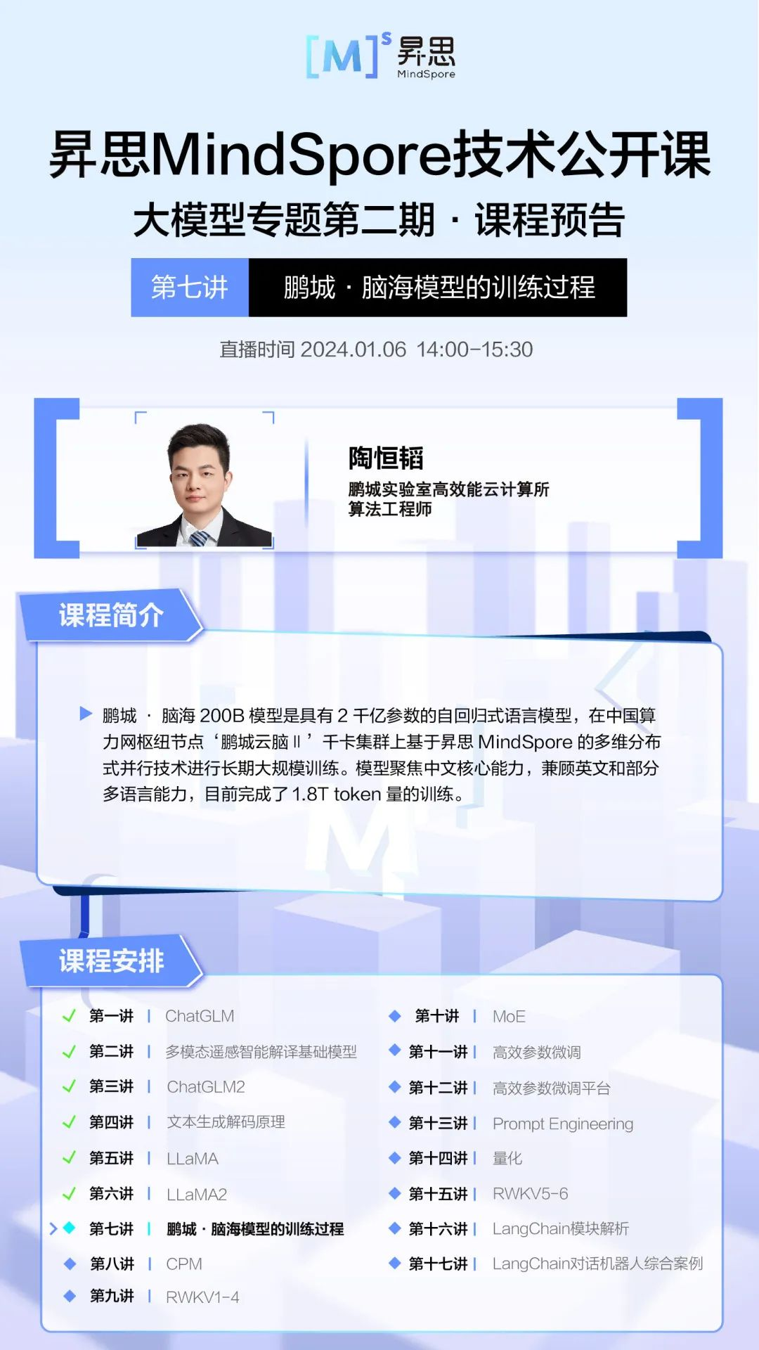 【昇思MindSpore技术公开课】第七讲:鹏城·脑海模型的训练过程课程预告