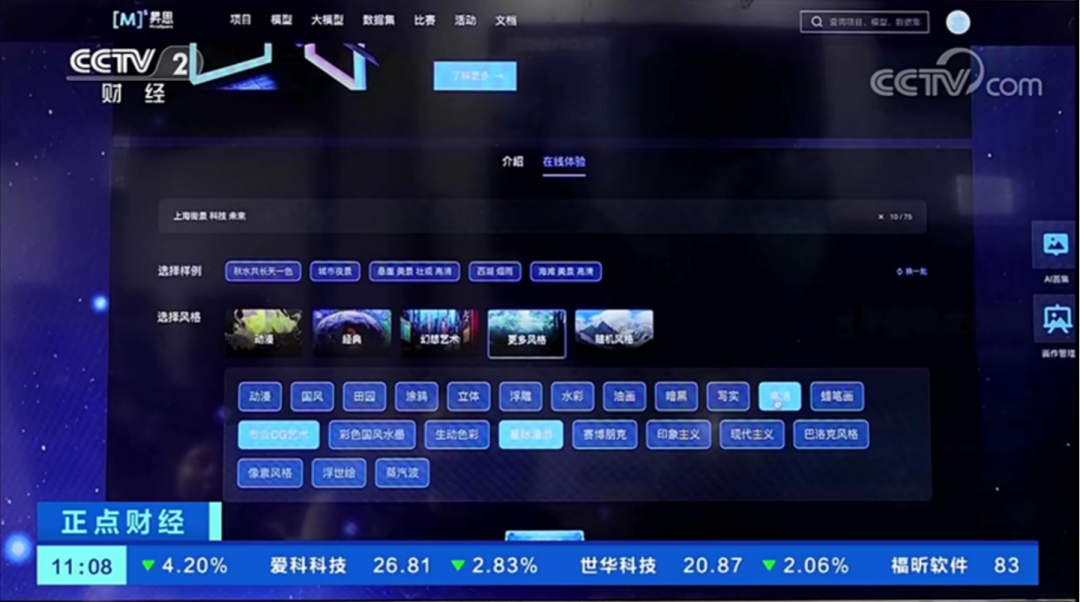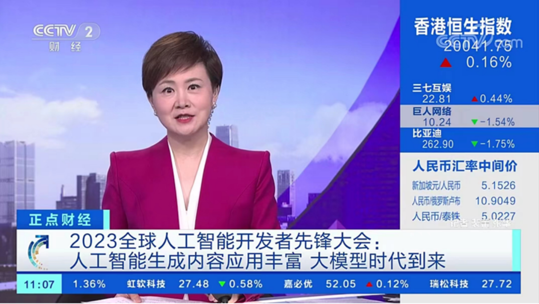 全球人工智能开发者先锋大会(GAIDC)上,昇思MindSpore对话数万开发者,带领大家现场体验硬科技,基于昇思MindSpore的中文文图生成模型-悟空画画大模型正式亮相,并受到了央视CCTV-2财经频道《正点财经》关于《人工智能生成内容应用丰富,大模型时代到来》专题报道。