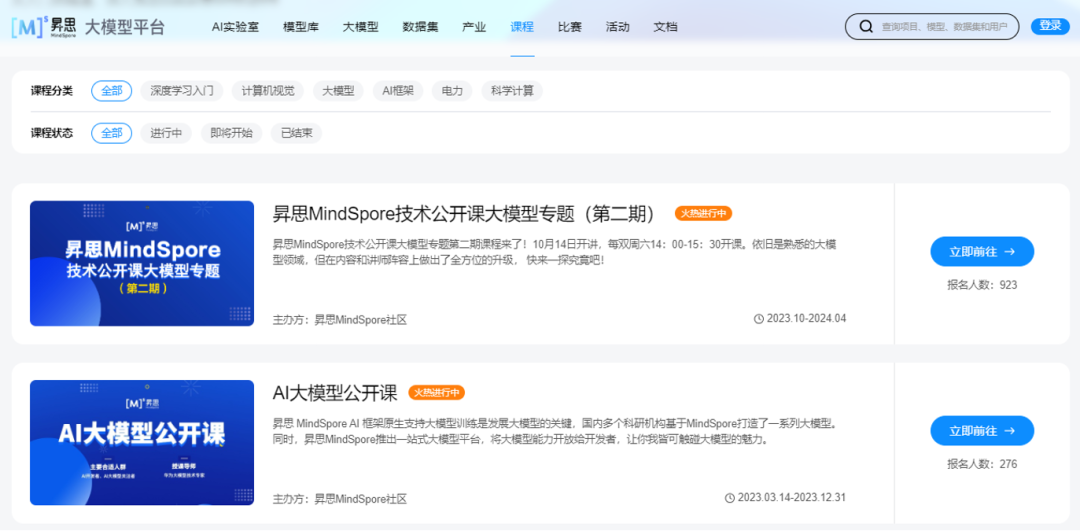 2023年,昇思MindSpore联合学术界、产业界各专家教授开展人工智能合作课程年度开课791门,建设校级金课79门,评选出优秀课件24+,通过开发实践,毕业设计、论文撰写、科研创新等,助力学生一步步成长为AI人才,走上科研、流入企业。其中【昇思MindSpore技术公开课】大模型专题课程16期,场均覆盖1W+人次,吸引900+开发者参与学习。