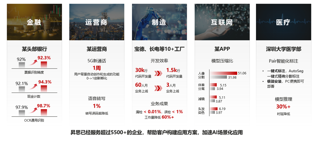 在金融、运营商、教育、能源、互联网等众多行业广泛应用,并在鹏城云脑、武汉、合肥、上海、杭州、西安、廊坊、沈阳、青岛等地的人工智能计算中心广泛使用。