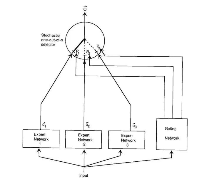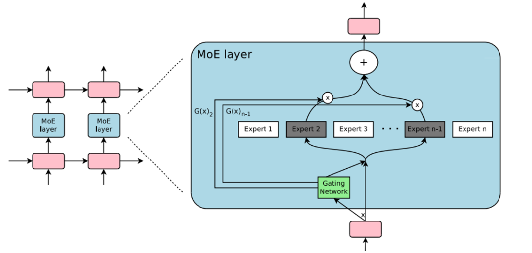 Export Network,用于学习不同数据,一个Gating Network用于分配每个Expert的输出权重。
