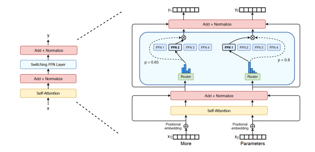 简化了MoE的Routing算法,Gating Network每次只Route 到1个Expert。