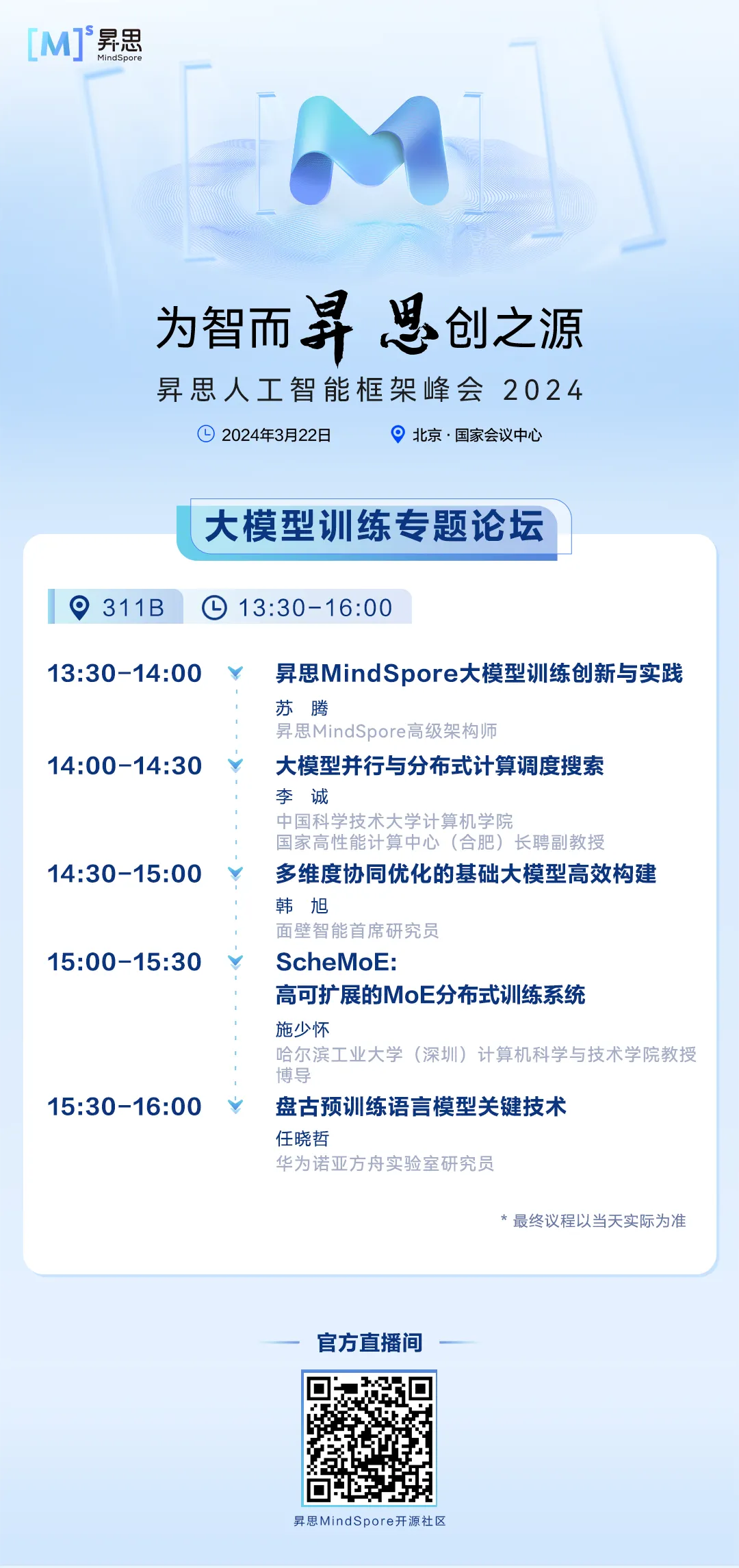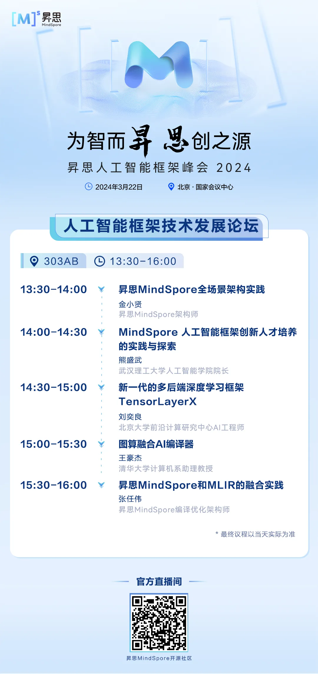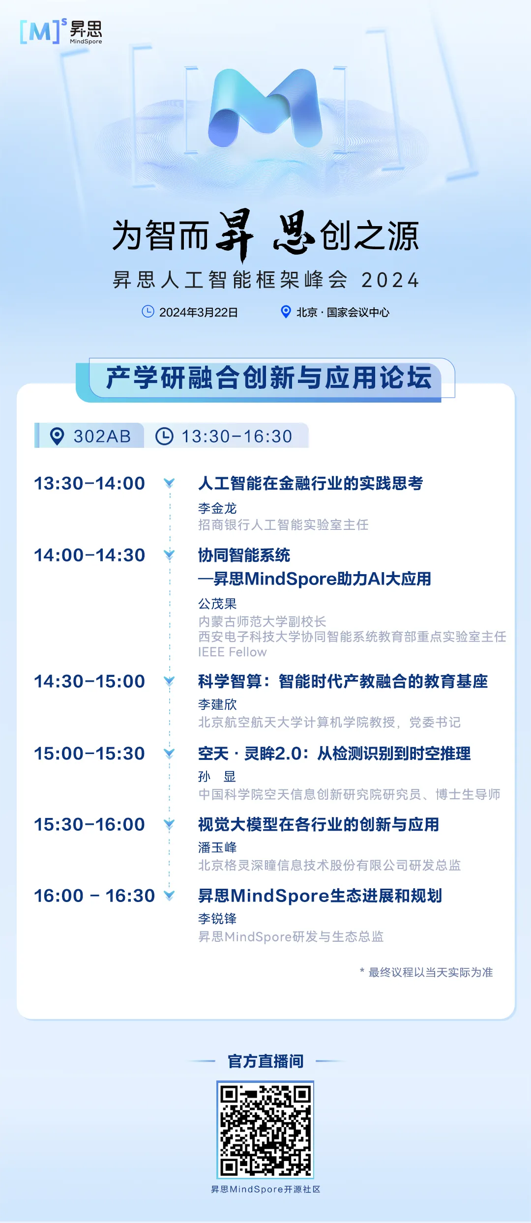 「昇思人工智能框架峰会2024」将于2024年3月22日在北京国家会议中心召开。本次峰会不仅有干货满满的主题演讲,还有6场精彩纷呈的专题论坛。