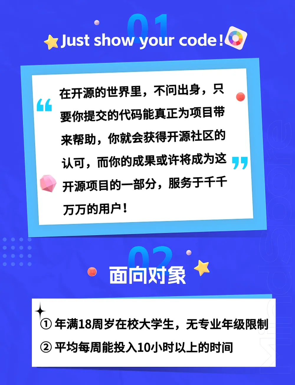 **技术大咖1对1指导:**活动中每个项目任务都配备了资深导师,带领你打开开源大门,深度参与社区贡献。