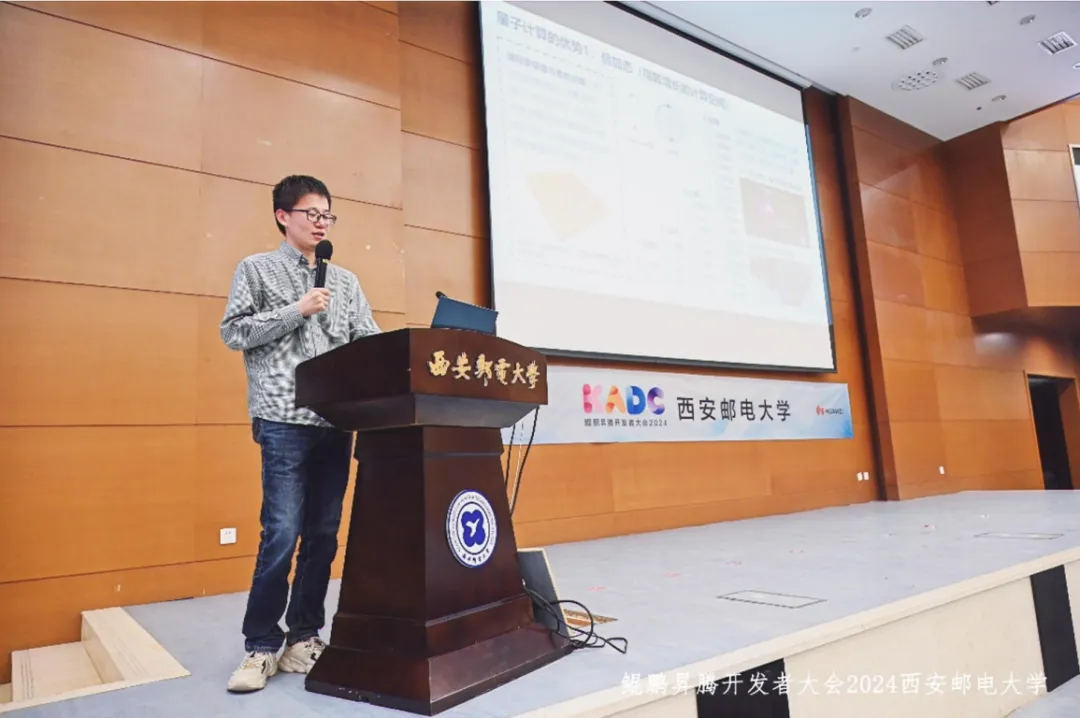 昇思MindSpore Quantum研究员、上海交通大学物理系博士王耀以《揭秘量子计算,带你玩转MindSpore Quantum量子编程》为主题,为在场师生讲解了量子计算框架的相关知识。MindSpore Quantum是昇思MindSpore社区推出的新一代、开源、量子经典混合计算框架,能够高效地支持主流量子算法和经典量子混合算法,为量子计算的研究和发展提供了一个高效的编程框架。