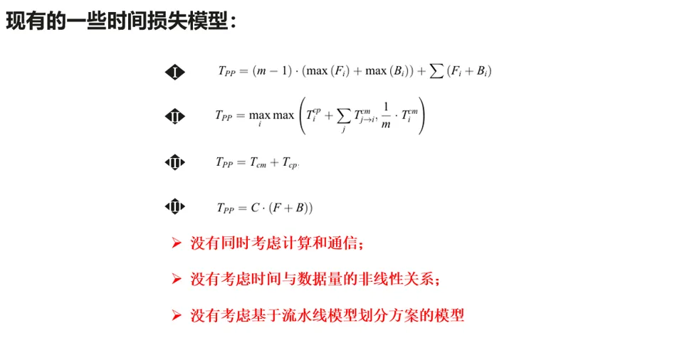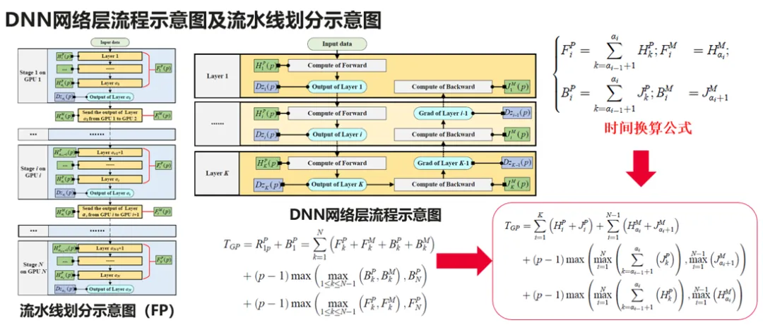 考虑流水线模型划分,进一步推导了时间损失模型的包含可优化项的公式: