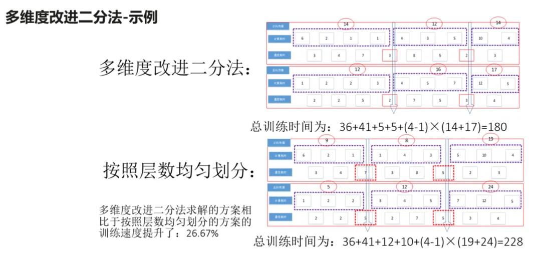 针对GPipe的流水线并行方案划分,介绍了改进多维度二分法: