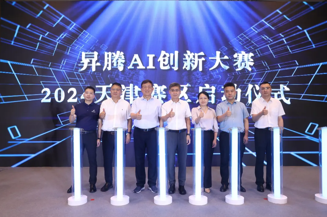 天津市河北区人民政府副区长田强、北京大学法律与人工智能研究中心/实验室专家顾问高绍林、天津市数据局数字科技和基础设施建设处处长李颖、天津市河北区数据局局长杨天虎、北京大学天津校友会会长宋金链、天津天开发展集团有限公司副总经理王杨、华为天津昇腾创新中心CTO李永强共同按下启动按钮,“昇腾万里·齐聚津门”昇腾AI创新大赛2024天津赛区活动正式启动,一场创新与智慧的激烈角逐正式拉开帷幕。