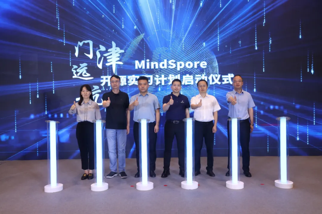 紧接着,天津市河北区数据局局长杨天虎、华为天津昇腾创新中心CTO李永强、昇思开源生态总监杨滔、南开大学软件学院副院长谢茂强、天津科技大学人工智能学院副院长陈亚瑞、天津师范大学研究生院副院长王为共同按下启动按钮,昇思 MindSpore“津门远航”开源实习计划正式启动,期望更多天津开发者和高校同学踊跃参与其中。