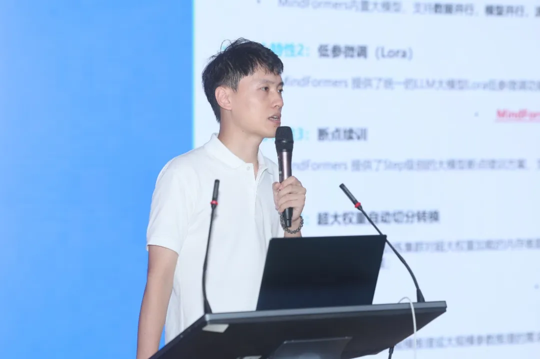 昇腾技术经理董港分享了MindSpore Transformers的大模型套件的系列特性功能,并以Qwen1.5-7B为例进行大模型微调实践、推理实践。在实践环节,与线上线下开发者一起头脑风暴依托MindSpore Transformers大模型使能套件实现GLM3-6b大模型推理。