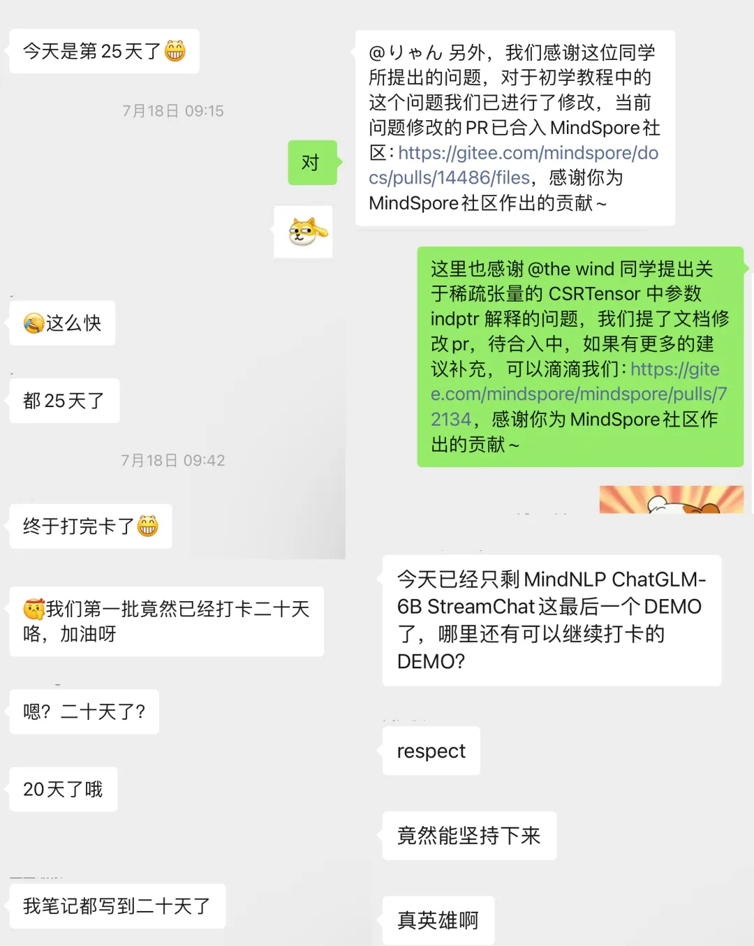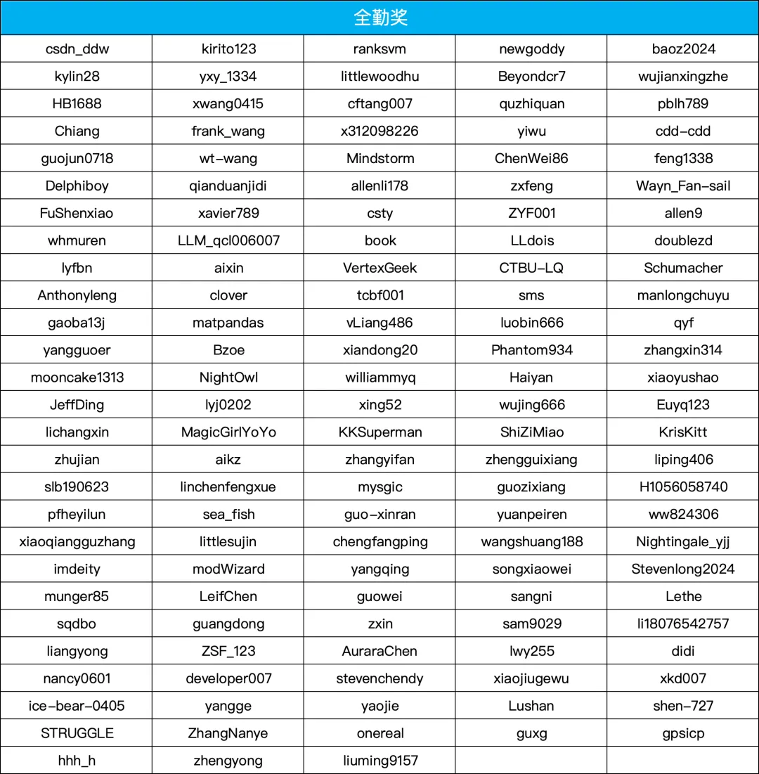 在打卡营期间,同学们充分展现了自己的学习热情和求知欲。在这25天中,1000+开发者累计发布了近4万篇学习心得,积极分享学习心得和体会,相互激励、共同进步。其中134位同学完成25节课打卡,获得全勤奖。