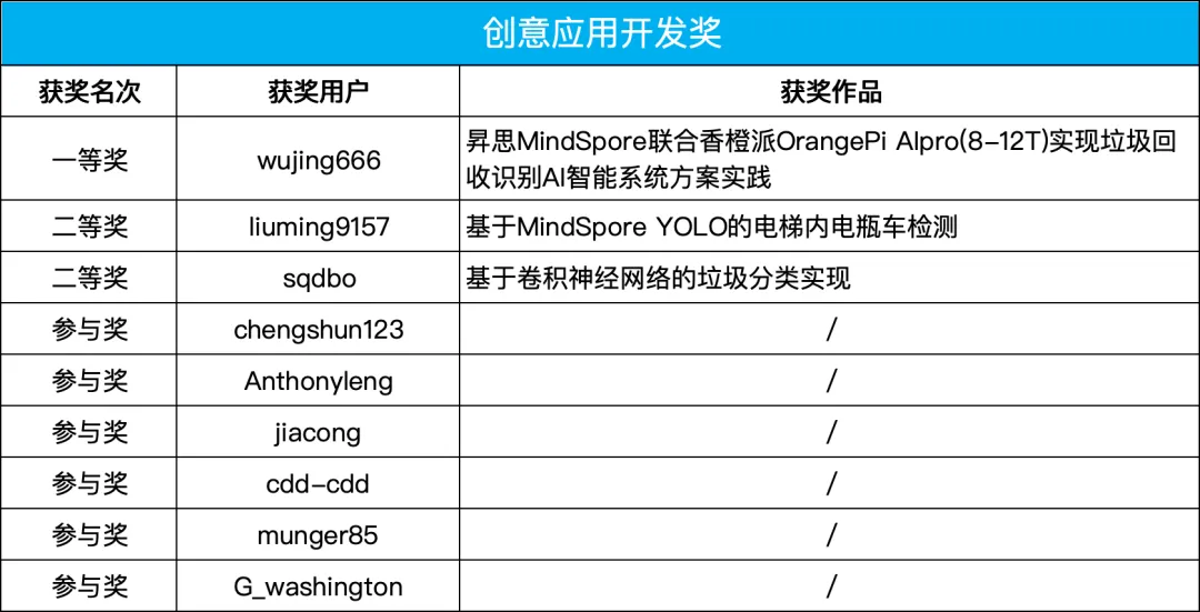 恭喜以上同学在本次打卡营中获得奖项,优秀作品将陆续在公众号发布,欢迎大家关注公众号【昇思MindSpore】,获奖的同学请凭借昇思大模型平台账号截图联系小助手(mindpore_0328)领取奖品。