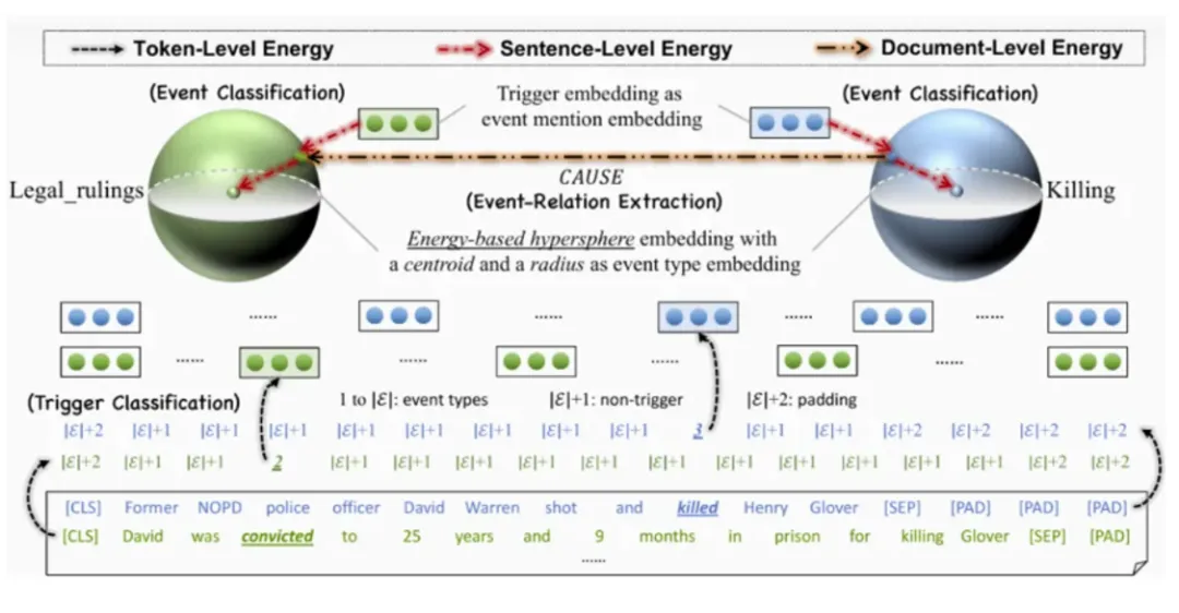 该论文提出了一种基于能量的超球体模型(SPEECH),用于解决以事件为中心的结构化预测任务。针对事件结构复杂且组件之间存在多种依赖关系的问题,SPEECH模型通过能量函数和超球体表示方法,成功捕捉了事件结构化组件之间的复杂依赖。在MAVEN-ERE和OntoEvent-Doc两个数据集上的实验结果表明,SPEECH模型在事件检测和事件关系抽取任务上均展示了显著的性能和精度提升。