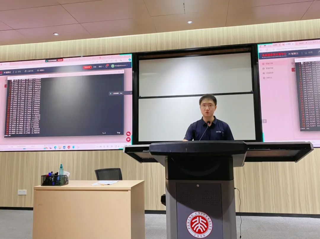 北京大学博士生原思浩、范成分别上机演示了AI分子力场的训练与使用XRD强度作为CV进行增强采样模拟水结冰过程的案例。