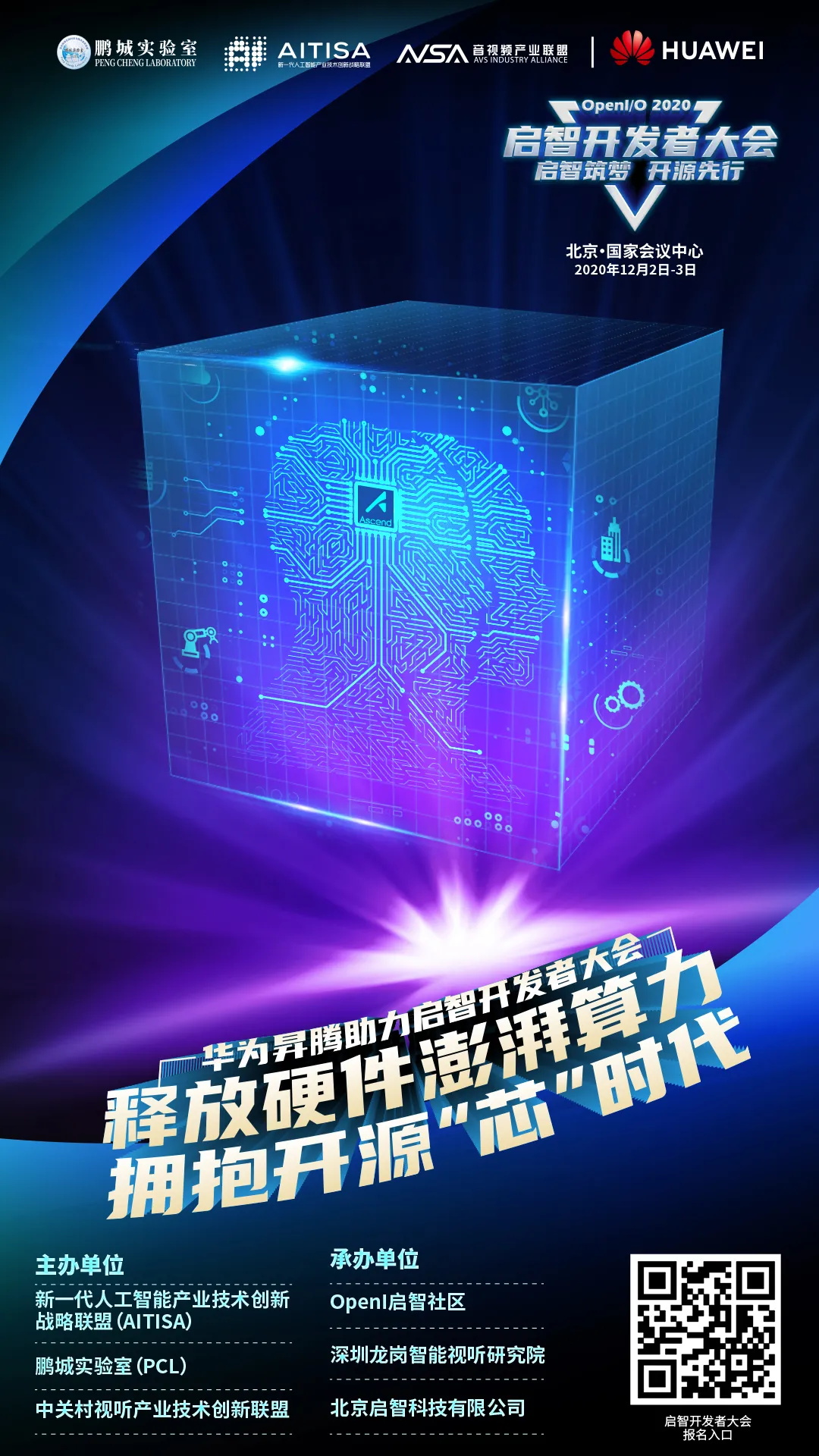 12月2-3日,北京国家会议中心,OpenI/O 2020启智开发者大会,华为昇腾专场,等你来——释放硬件澎湃算力,拥抱开源“芯”时代!
