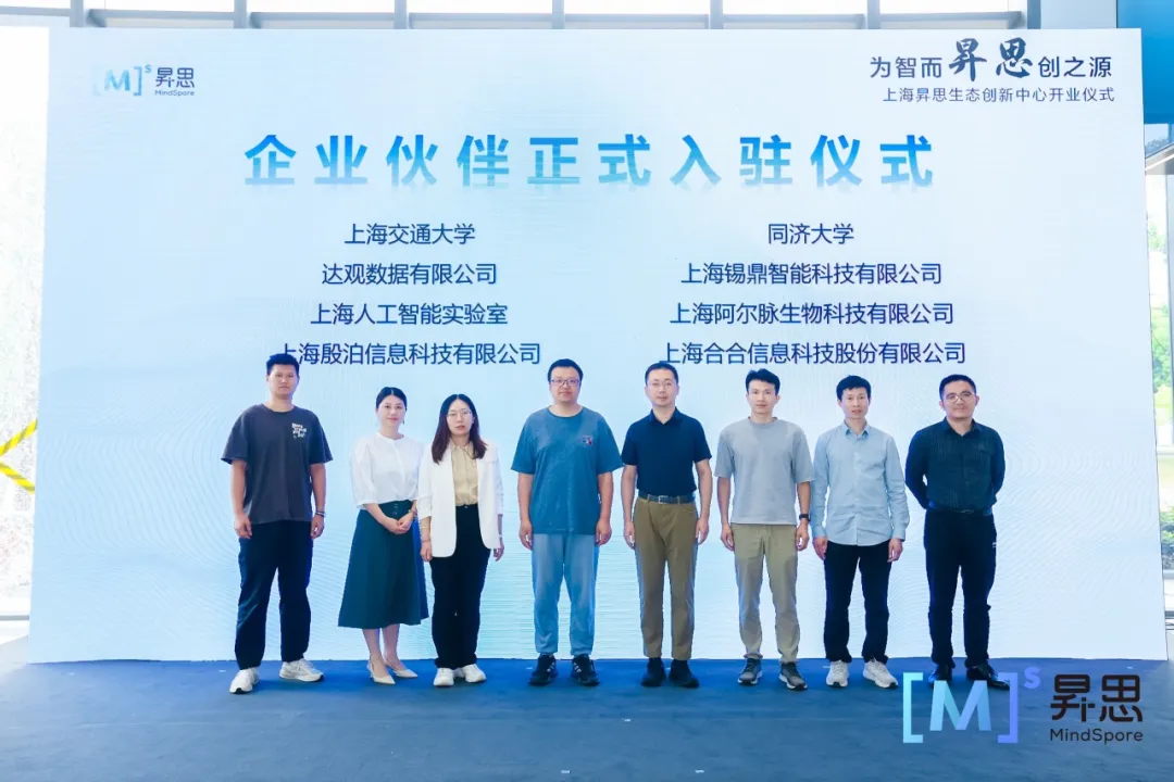 活动现场,百信信息技术有限公司、博瀚智能(深圳)有限公司、达观数据有限公司、上海孚典智能科技有限公司、上海合合信息科技股份有限公司、上海交通大学、上海澜码科技有限公司、上海蜜度信息技术有限公司、上海人工智能实验室、中国商飞上海飞机设计研究院、商汤集团有限公司、同济大学、上海锡鼎智能科技有限公司、中国科学院上海药物研究所、上海殷泊信息科技有限公司、中核装备技术研究(上海)有限公司正式入驻上海昇思生态创新中心,未来将共同推动人工智能产业生态。