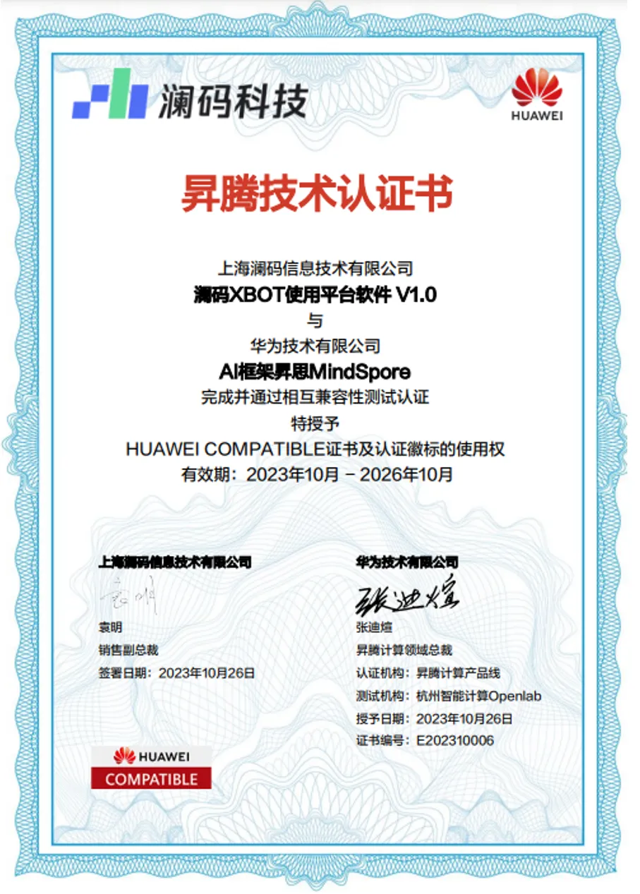 2023年初,澜码科技和昇思开展适配合作,10月取得昇思适配认证,今年8月也将作为第一批伙伴入驻上海昇思生态创新中心,一起为大模型落地应用提供无限可能!