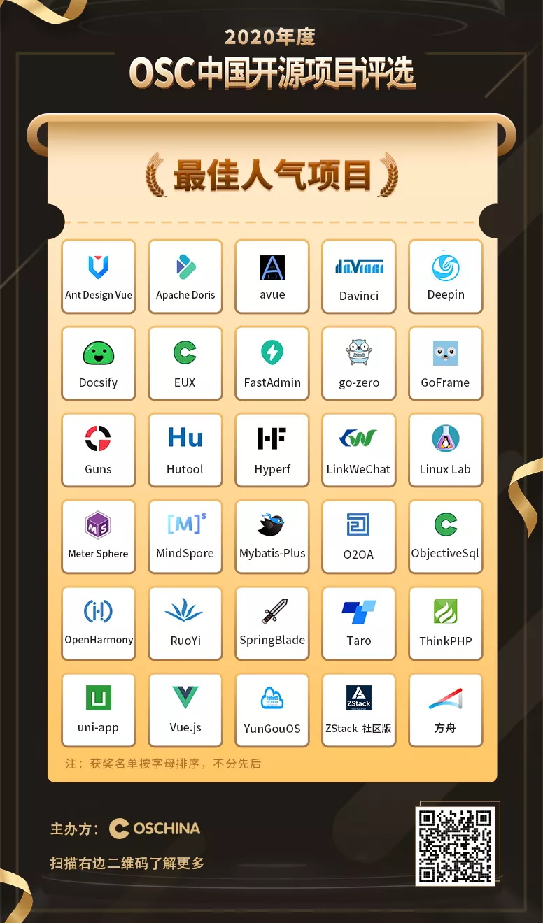 恭喜「MindSpore」获得 2020 年度 OSC 中国开源项目评选「最佳人气项目」