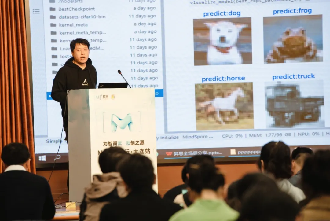 活动现场,华为中国区技术工程师王舒心为现场MindSpore开发者分享《昇思+ModelArts全栈操作》内容,昇思MindSpore持续突破创新的边界,推出了全新2.4版本,原生支持超节点,加速大模型的原生创新,进一步推动了AI软硬件协同技术发展。同时,积极建设活跃的开源社区,汇通高校和企业开发者,共同为大模型时代提供创新的框架支持。